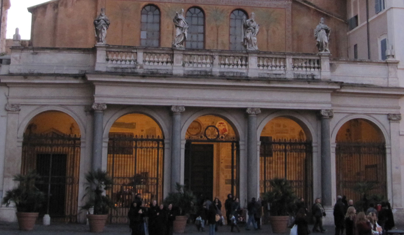 The portico was made by Carlo Fontana (1638-1714), pupil of Pietro da Cortona and Gian Lorenzo Bernini's collaborator, who built it in 1702. On the railing of the portico the statues of the Popes: Calixtus, Cornelius, Julius and Calepodius.