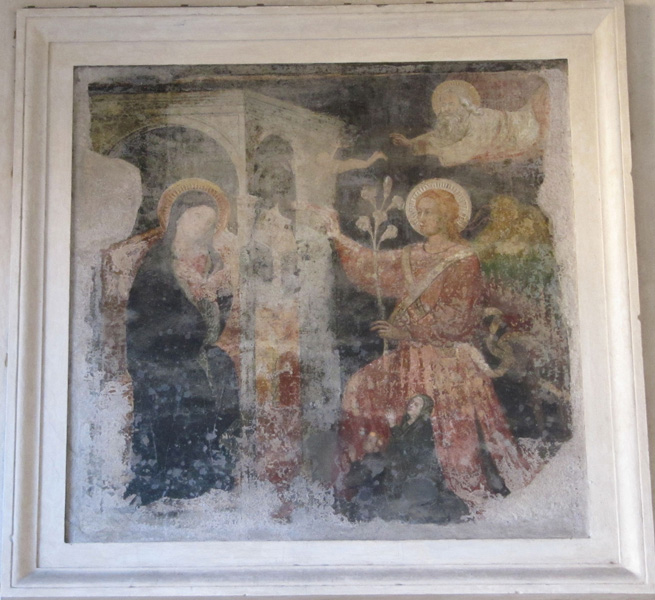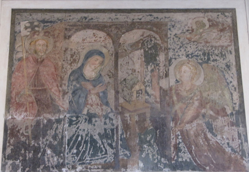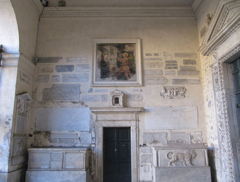 Inside the portico are exposed inscriptions, frescoes and tombstones.