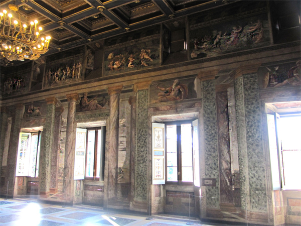 The frieze on the south wall shows the toilet of Venus, Apollo who weaves a crown, the myth of Arion, the myth of Pan and Syringe.